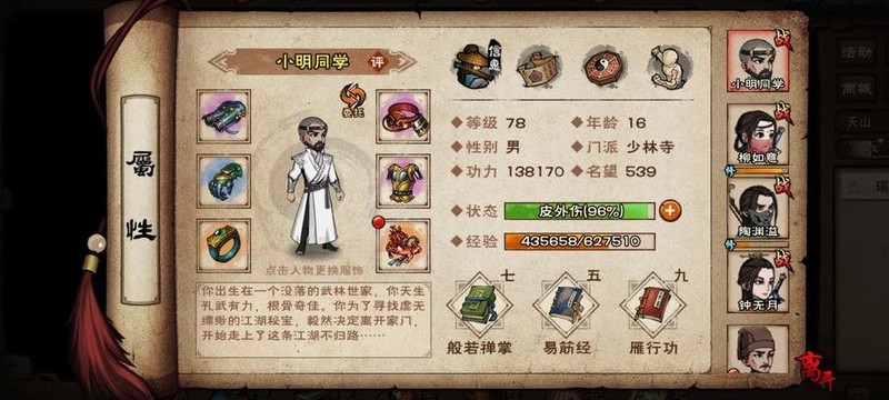 长生决,镇派内功,柳专属,可传功,等级八十五。