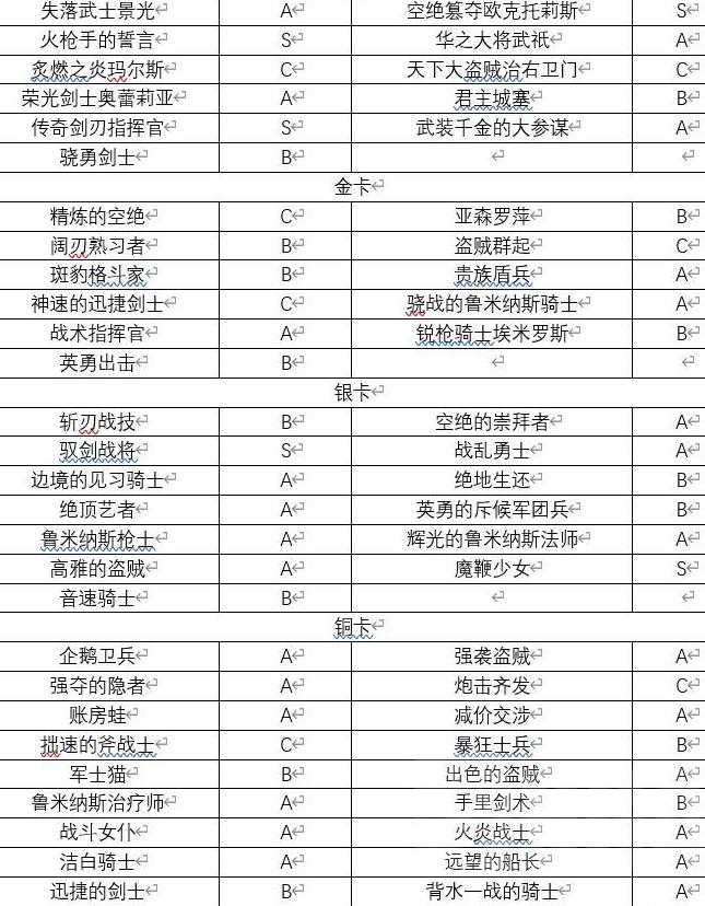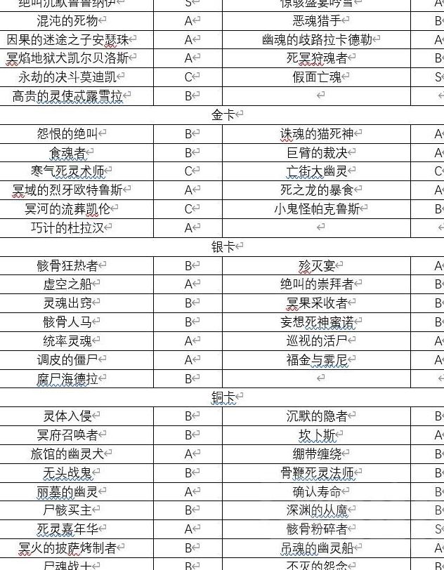 单卡抓取优先级分为四档:S级为职业核心卡,必抓;A级为优质单卡;B级可考虑抓一张,偶有奇效;C级则尽量避免选取。