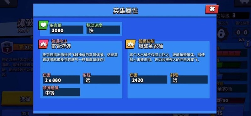 麦克的优势在于拥有高额的范围伤害输出,攻击可穿透障碍物,使其能在掩体后安全输出。超级技能不仅威力强大,还能破坏掩体。星徽之力则增强了他的生存与逃脱能力。劣势方面,麦克缺乏机动性,射程较短,容易被远程单位压制,且在近身遭遇战中较为脆弱。