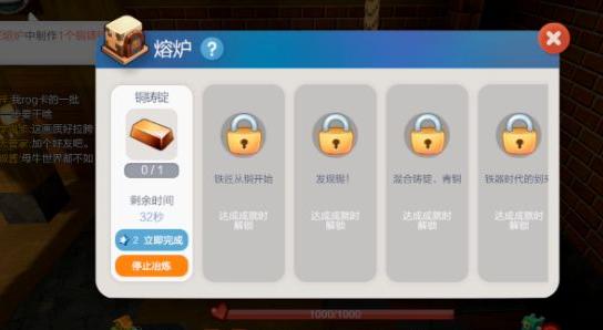 当六个槽位全部解锁后,准备120个铜原矿和60个煤矿,在熔炉所有槽位同时煅烧10个铜铸锭,即可顺利完成该成就。
