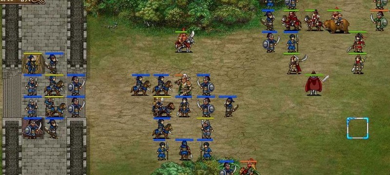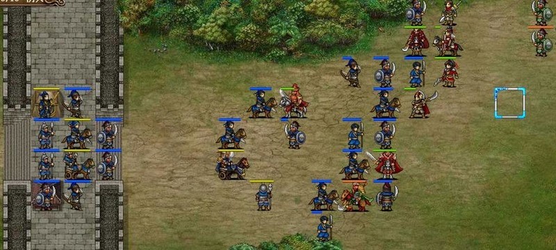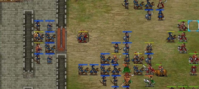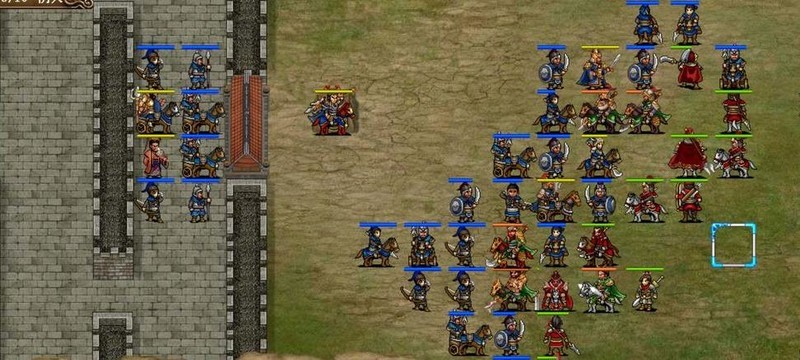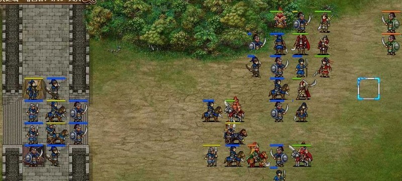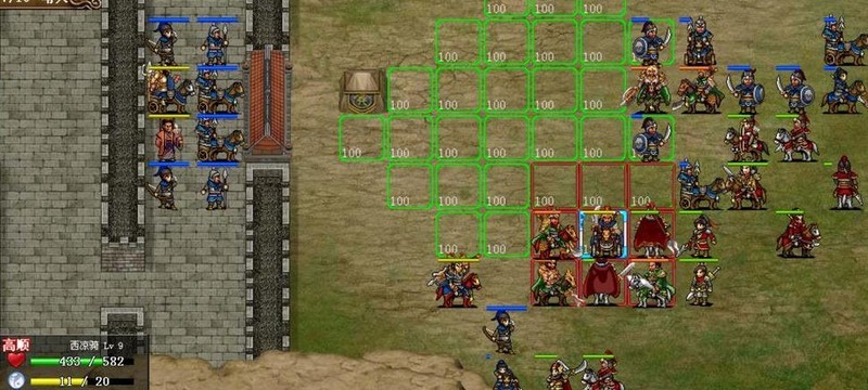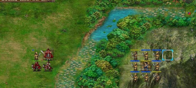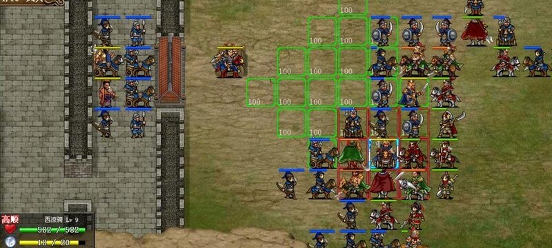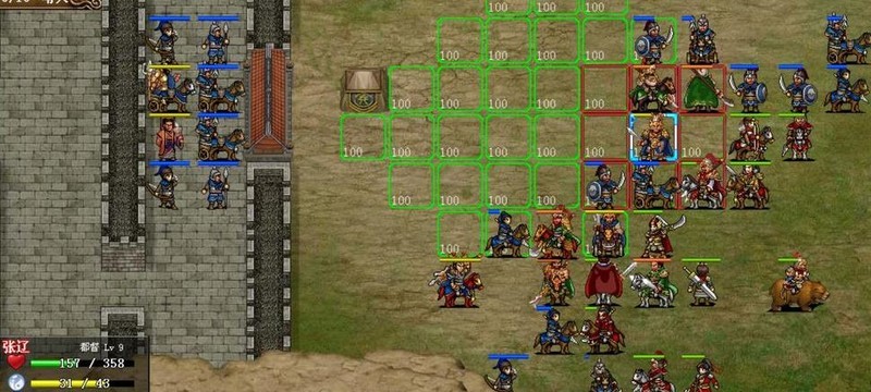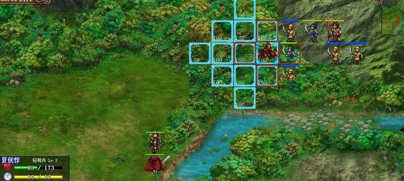 首回合布阵所示,曹仁以铜袖触发反击技,夏侯渊引开张济(其为二转兵种,移动力加一,却因此陷入险境),曹操则牵制杨奉、樊稠与高顺。