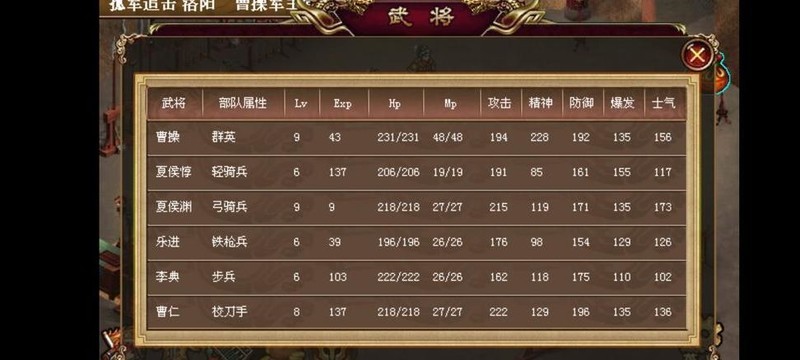 因新增五个剧情经验果,对等级进行了调整。首关打出654分后,服用三个经验果升至774分,收下6级队友;汜水关时再用一个经验果,将主力角色统一提升至9级,分别为曹操、曹仁和夏侯渊。