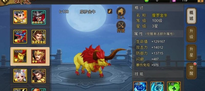 摩罗金牛变异后激活的高级属性中,具备闪避与爆伤免疫两项能力,与圣兽白虎的闪避、抗暴特性颇为相似。尤其是闪避属性,堪称专为竞技环境量身打造。在竞技场中,武将的闪避值越高,越能频繁触发闪避效果,有效规避敌方技能打击,减少伤害输出。这不仅提升了自身的生存能力,还能在关键时刻保存实力,伺机反制,打出致命反击,掌握战斗主动权。
