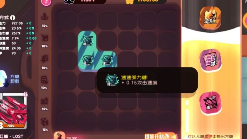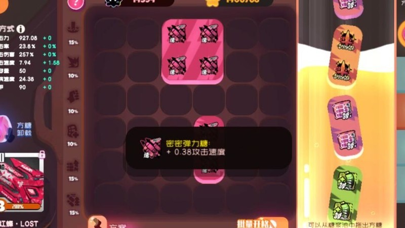 攻速糖可提升射击速度,现用途较少,仅在暮云蝎武器射速较慢或黄金山场景时建议携带。