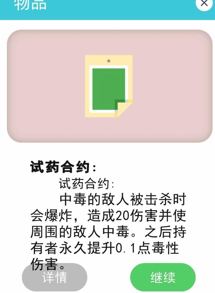 在众多道具中,试药合约与药钵属于稀有特殊类,仅在游戏推进至特定阶段时以概率出现,每局仅有四次选择机会,一旦遇到务必优先获取。试药合约能持续强化毒伤,具备无限成长潜力;药钵更是近乎神级的存在,一旦入手,只要保持中毒状态,几乎可实现不死续航,极大提升生存能力。若无法获得药钵,怪物类道具是其下位替代,虽稳定性稍逊,但多携带几个也能接近类似效果。至于柠檬这类回血道具则实用性较低,不必强求。上述五种道具应列为最高优先级,即便牺牲资源也应争取拿下,前提是确保基本生存。蝙蝠类道具因效果微弱且存在感低,无需关注。前期可适当堆叠冷却缩减,以加快毒瓶释放频率,提升输出效率。