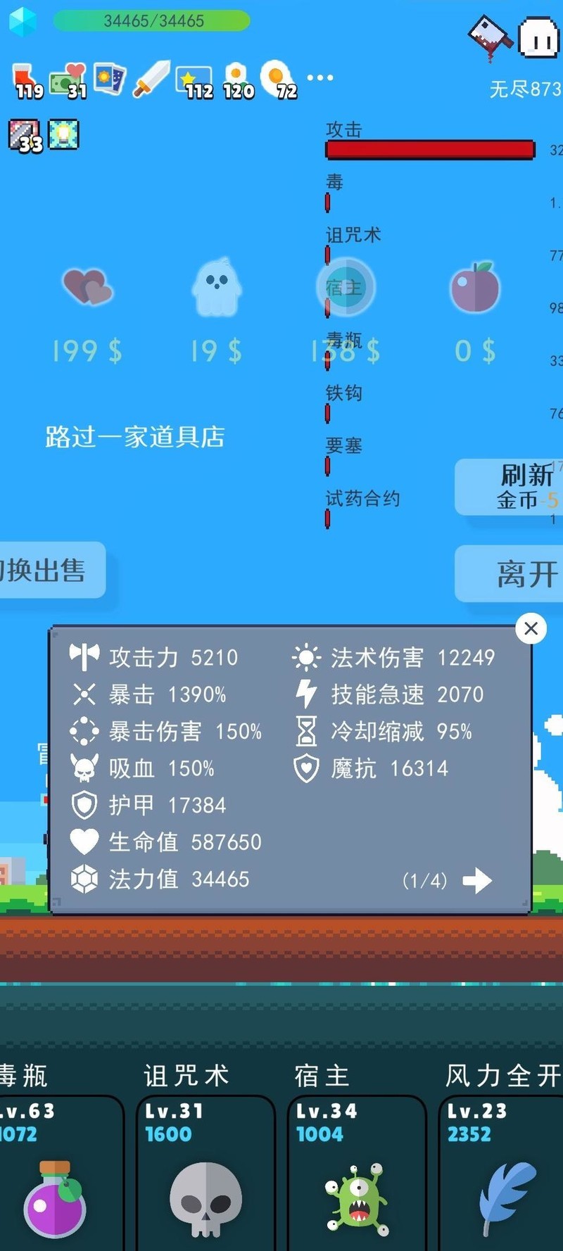 篝火升级后即可推进。之后通过刷怪获取资源,利用低价购买道具并快速清空商店库存。若不嫌繁琐,可将无用道具出售换取更多资金,持续刷新商店循环购入所需物品,主要开销在于刷新费用,因倒卖道具本身就能盈利。