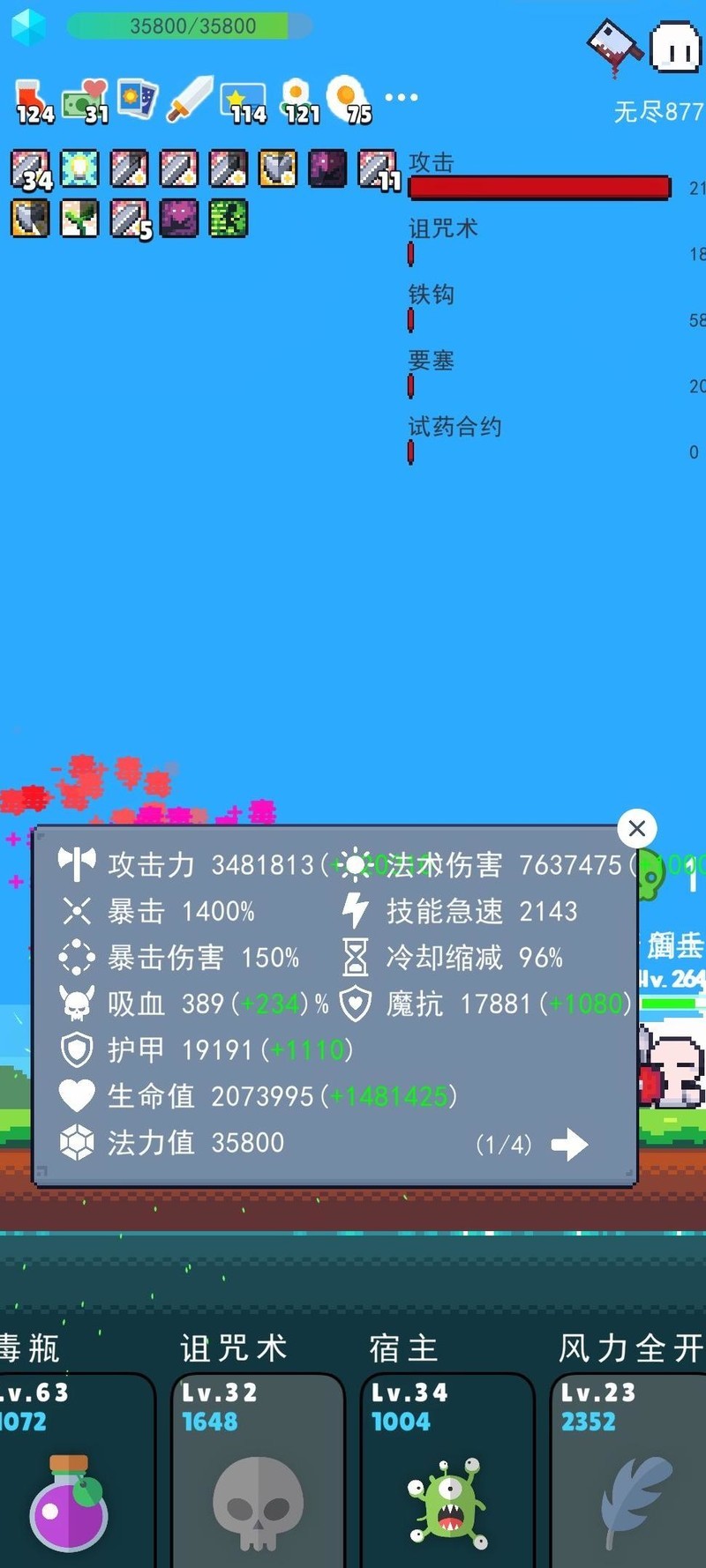 开局使用诅咒术为全体敌人附加中毒和减伤效果,随后通过宿主爆发迅速叠加毒层,后期基本一击必杀。毒瓶流核心在于持续叠加中毒层数,配合冷却缩减加快技能循环,提升叠毒频率。后期资源有限,优先选择风力增强面板属性,若追求稳妥可选无敌,但常规情况下生存压力较小。非无尽模式建议关闭自动无敌以求稳定输出。