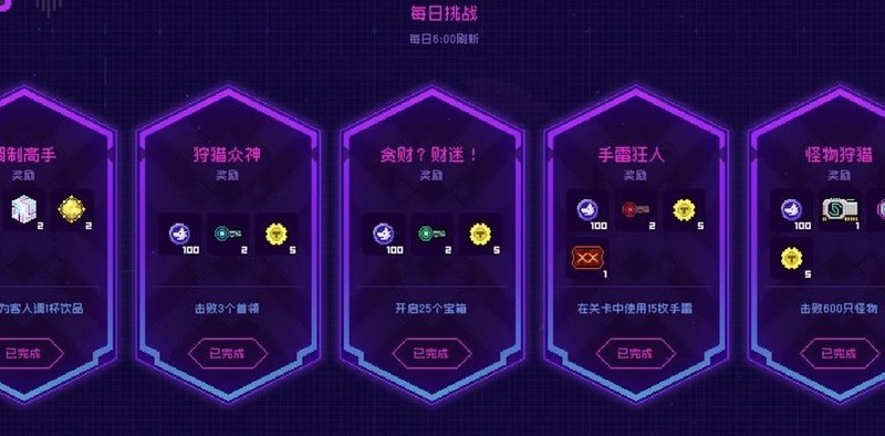 每日对局中可获得霓虹币,但仅在击败Boss后掉落,小关卡不会产出。每天最多获取3个,请注意上限仅为3个,不可超出。起初我误以为每次战斗都有几率掉落,像个傻子一样刷了一上午才明白规则。