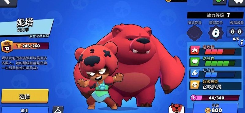 优点:占据有利地形后能有效进行远程消耗,整体能力均衡,没有明显缺陷。自身具备一定生存与输出能力,配合召唤物可形成持续压制。缺点:炮台AI有时表现不佳,缺乏智能判断。萨满和妮塔属于易上手的综合性英雄,攻击范围中等偏近,拥有群体伤害技能。凭借血量高、输出稳定的熊宝宝,在持久战和消耗战中优势明显,尤其适合Showdown大逃杀模式,同时在其他玩法中也有出色发挥。