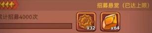 完成任务只需招募4000次,但实际上储备3000枚招募令即可。因为在悬赏任务中获得的月饼可开出招募令、宝箱、金砖等资源,补充后续所需,具体奖励内容见下图所示。