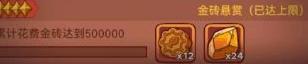 完成悬赏任务理论上需50万金砖,但实际上约35万即可。因开启道具、钻石宝箱、完成招募或参与宝箱周活动均可获得金砖奖励,获取途径多样,积攒速度较快,无需担忧资源不足,合理规划使用更可轻松达成目标。
