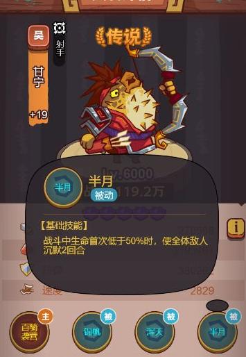 将甘宁置于一号位能充分发挥其作用。他属于献祭型武将,当生命值降至50%以下时,可对敌方全体施加持续两回合的沉默效果。若对方阵容中有两个关羽和吕布,此技能可有效限制其发挥,使吕布难以释放心魔技能,极大削弱敌方输出能力。