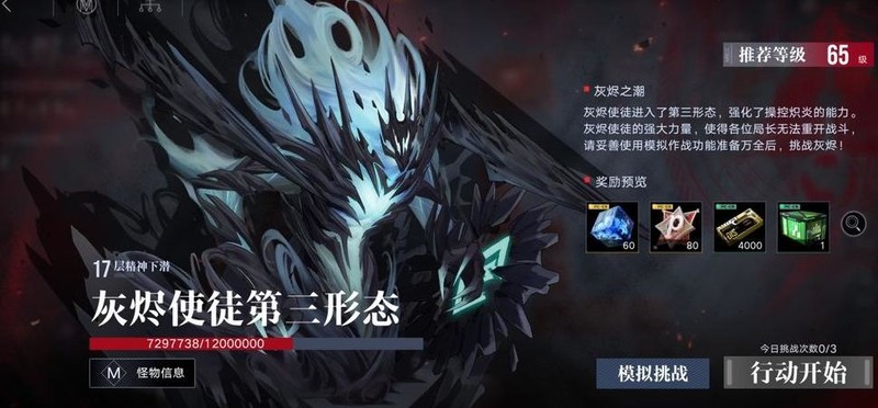 灰烬使徒的核心机制为前两轮两次破核,后三轮三次破核,共三次破核机会。末段30秒释放必杀技,若未妥善安排破核将被秒杀。随着层数提升,后期BOSS会逐步强化形态。