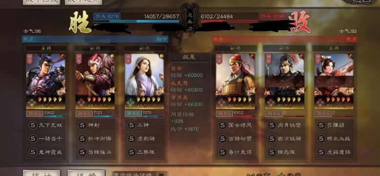 主将吕布携带一骑当千与鬼神霆威,搭配一鼓作气或胜而益胜,辅以胜战和武略或执锐,全武力加点并适当提升速度,确保输出爆发。副将太史慈配备折冲御侮或弯弓饮羽,配合当锋摧决或再次使用折冲御侮,全武力加点且速度高于吕布,抢占行动先机;兵书选择作战、蛮勇非勇或胜而益胜,再配胜战与武略。黄月英布阵三势阵并搭配虎豹骑,全统加点,兵书选用九变、诱敌深入、救主与励军。该阵容爆发极强,通常在前三回合便能重创对手。黄月英提供的先攻效果,结合双将高速度,使我方几乎稳夺前三回合先手权。但面对藤甲兵时伤害受限,对阵擅长拖延战局的队伍较为吃力,遭遇五虎枪或左慈体系时也易陷入被动。