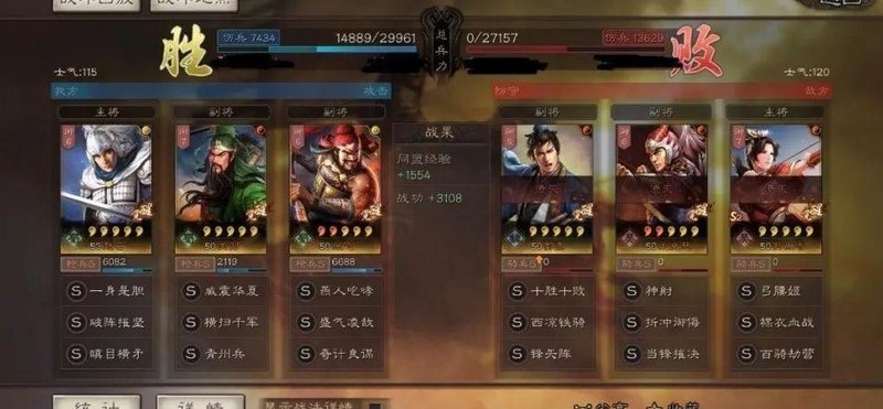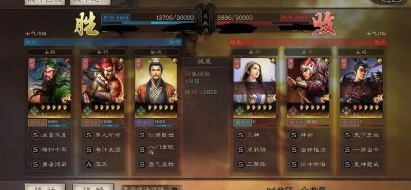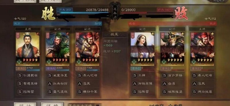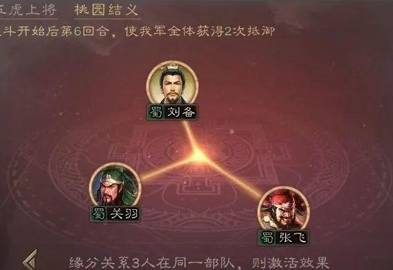 战斗进入第六回合时,全军可获得两次免伤效果,羁绊机制有效提升队伍后期生存能力。三人同属蜀国阵营,可享受国家队属性加成,整体协同性强。但略有欠缺的是,三者兵种适性未能全部达到最优,影响部分实战表现。