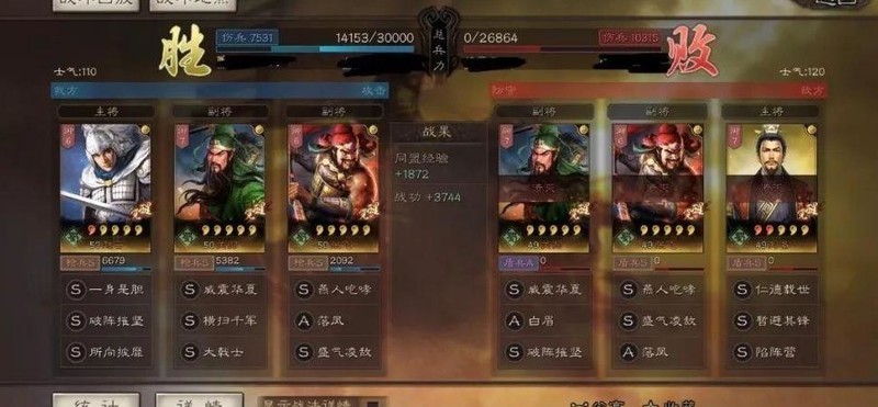 赵云主将,搭配破阵摧坚与卧薪尝胆,全武力输出配置。