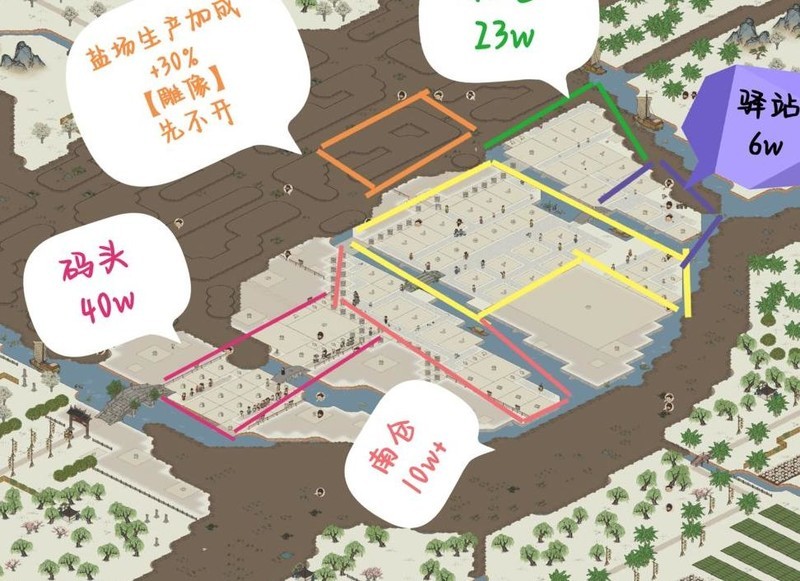 府衙建筑群仅设采灵画舫、税客司、普通仓库与民居,其余皆无。