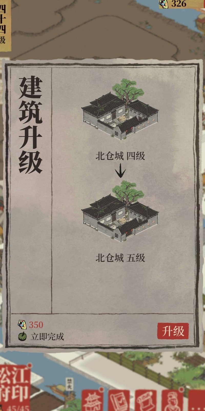 松江普通仓库升至3级仅有700格容量,而南仓或北仓一级即有1000格,因此必须开启南北仓。其中北仓等级关联每周六中午12点的倭寇入侵活动奖励,需消耗350补天石升至5级,南仓则只需升到4级即可满足需求。