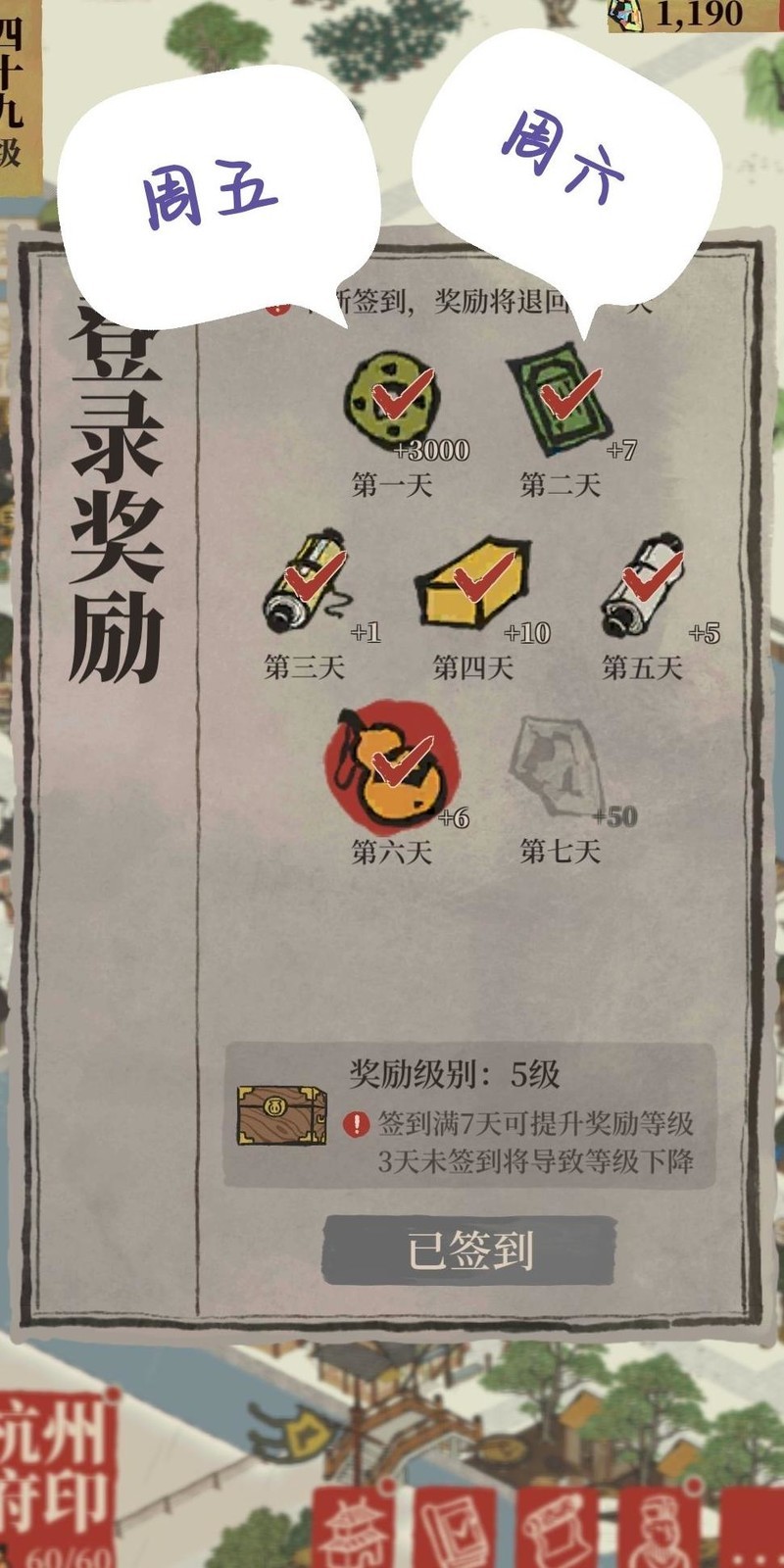 将周签到的首日设为周五,周六即可获得7张周签日加速票及1张日常加速票,合计8张。每晚九点还可前往应天客栈向老板娘领取3张周加速票,累计可得18张。