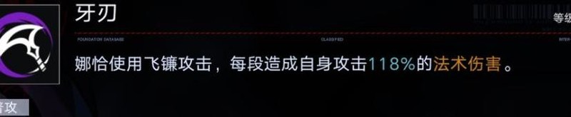 先谈谈娜恰的基础属性。4256的血量以及不足300的双防在诡秘禁闭者中处于偏低水平,因此若想将她作为前排承担伤害需格外谨慎,这并非她的优势所在。然而,她高达670的攻击力在狂级角色中仅次于兰利,稳居第二,足以确保其输出能力极为强劲。再配合1.00的攻速加成,整体输出表现十分突出。综合来看,娜恰的核心竞争力主要集中于强大的攻击输出,这也是她最具看点的关键所在。