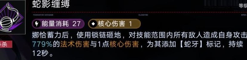 娜恰的必杀技具备出色的九宫格范围伤害,并附加1点核心伤害,能对命中的所有敌人施加标记。这一大范围破核攻击不仅提升了她的群体输出能力,也增强了对敌方核心机制的破坏效果。技能兼具广域覆盖与战术价值,是其作战体系中的关键一环。值得注意的是,该技能的蛇头特效若未准确命中地面目标,将无法造成伤害并浪费能量,因此释放时机需精准把握,适合擅长精细操作的玩家充分发挥其威力。