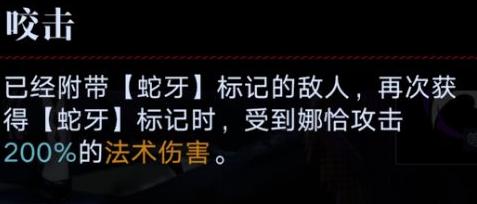 娜恰的狂厄深化效果咬击能显著提升蛇牙标记造成的伤害。由于她的必杀技与第四技能均为范围攻击,且均可附加蛇牙状态,因此在多数战斗中,蛇牙几乎可保持持续覆盖。依托这一机制,咬击的增伤效果得以稳定发挥,通过不断叠加标记实现可观的固定伤害输出。值得注意的是,该部分伤害属于固定数值,不会受到忘却深处等增伤类效果的影响,实战中可据此合理规划输出策略。
