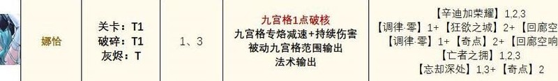 娜恰是一位具备破核、法术伤害、范围攻击、减速控制及持续输出等多重能力的禁闭者,技能机制全面,在多种副本环境中均能展现出较强的适应性与输出表现。尽管综合实力出色,但在多数阵容中尚未达到不可替代的地位,因此目前评级为T1。在灰烬之潮玩法中,由于缺乏实际战斗数据支持,暂不做具体评价。但从技能特性推测,她在长线关卡中的持续伤害能力值得期待,未来表现仍有上升空间。