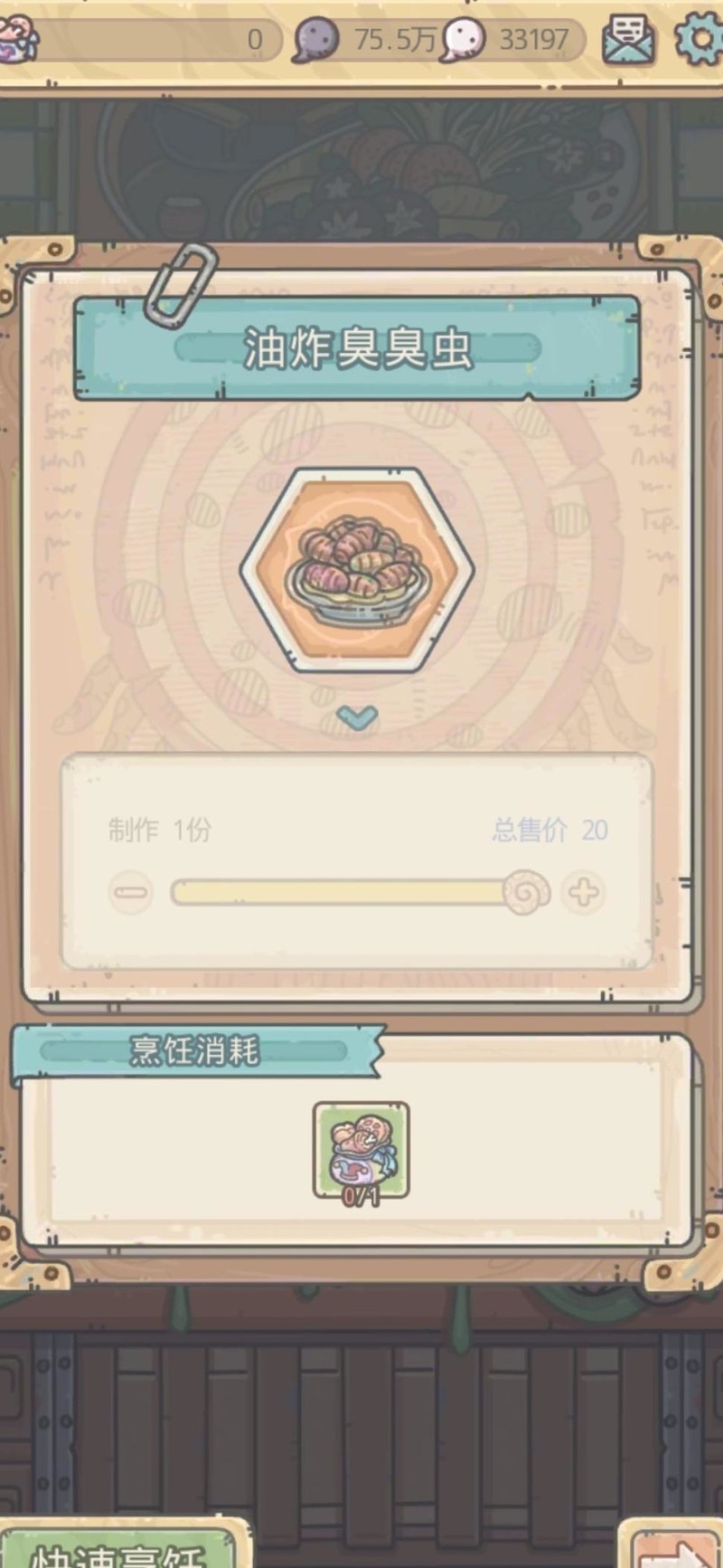 最初,原材料的获取速度为每小时固定数量,例如起初每小时可得20个,随着升级逐步提升至22个或24个。这些材料可以全部为绿色,也可以部分转化为蓝色,比如20个中可能是18个绿色加2个蓝色。在制作并出售美食时,所需原材料数量是固定的。以高品质的油炸臭臭虫为例,它售价为20美食币,仅需消耗一个绿色材料。这意味着每使用一个原材料,就能获得20美食币的收益,实现了原材料的高效转化与稳定盈利。