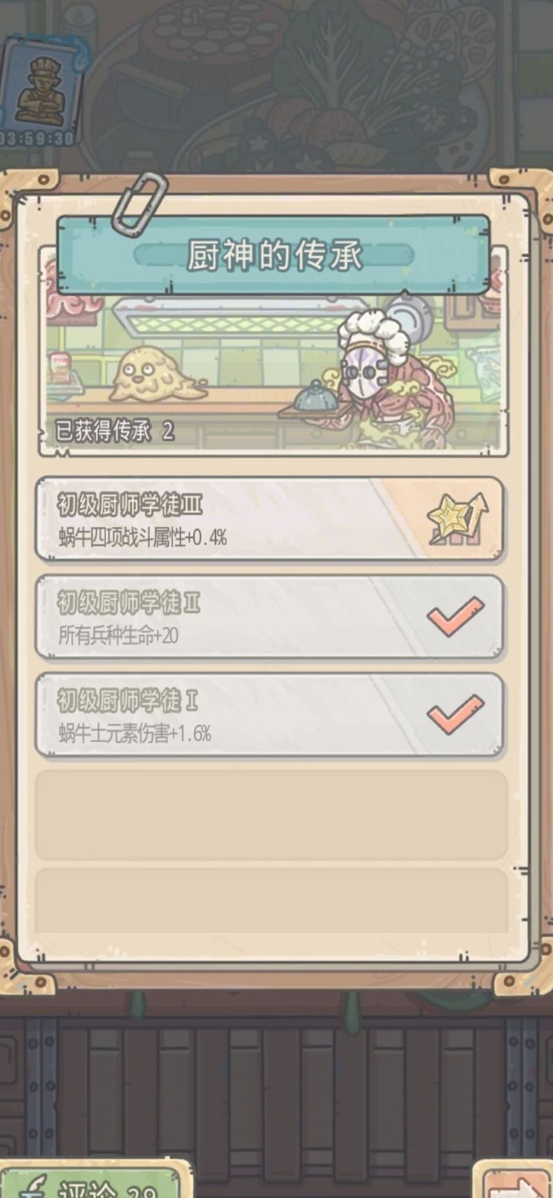 最后是销量奖励的最高档——厨神传承,与本体及兵种关联紧密,建议根据情况选择性学习。