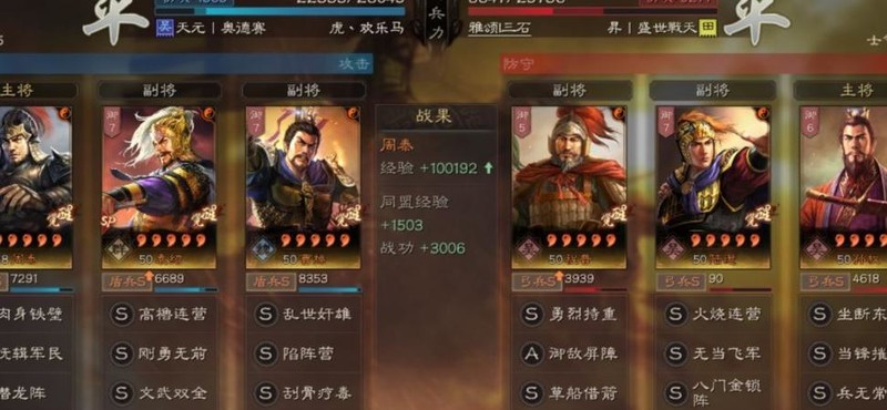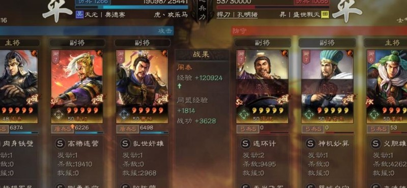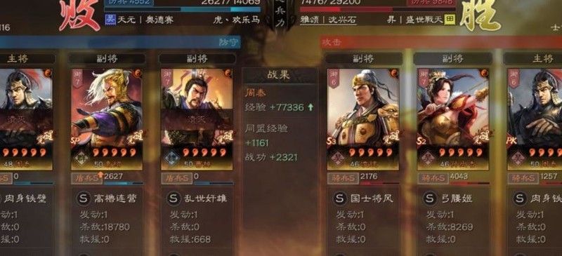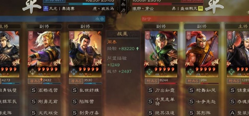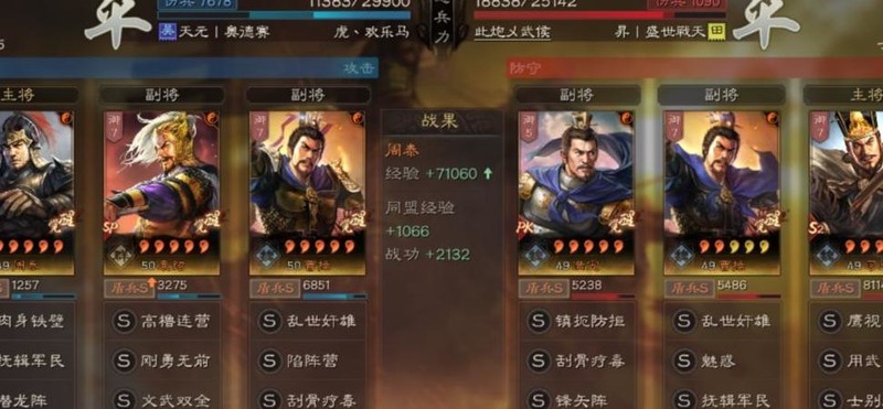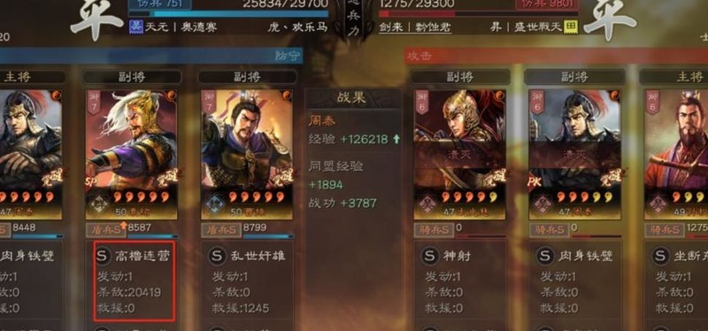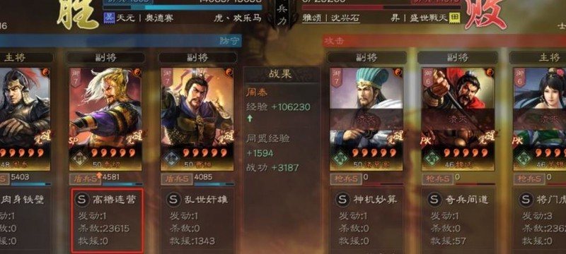 在输出方面,SP袁绍的箭矢极为稳定,配合周泰35、曹操30、潜龙15、刚勇65及12层易伤,并触发刚勇会心双爆,形成超强爆发体系,称之为顶级爆发,实至名归。