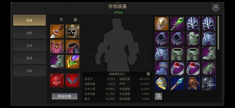 装备品质从低到高依次为白、绿、蓝、紫、橙。三件同名装备可合成升阶至更高一级,两件同名装备则能重组成同品质的其他装备。在未获得橙色装备前,无需进行洗练操作。每个部位虽有多种不同外观的装备,但个人认为其基础属性并无差异。在尚未获取橙装的阶段,建议优先选择带有技能特效、冷却缩减、技能伤害和生命上限等词条的装备。其中,技能特效是当前版本收益最高的属性,对输出提升尤为显著。目前排行榜顶尖玩家的六件套技能特效总和已突破300%,而我的仅有160%,差距明显,仍需持续优化装备搭配以提升战力。