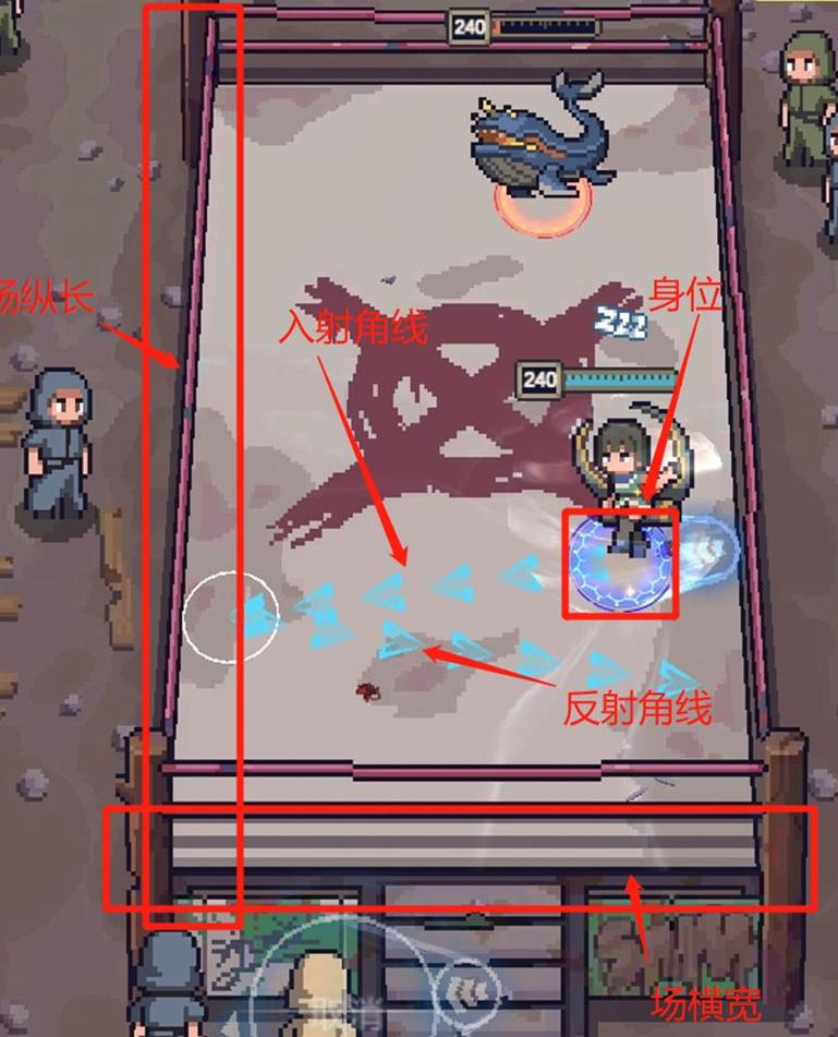 在不使用减重等核心装备时,月读在矿坑中的移动技巧如下:将指示器拉直后横向发射,弹道可覆盖约六个场地宽度,并最终回到起始位置附近;纵向发射则弹跳约三个纵向长度,若朝远端墙壁发射,角色会靠近该侧墙壁。利用这两种方式可精准控制走位。若需小幅后移,应保持指示器夹角较小,使入射与反射线贴近,角色将沿反射方向移动约一个身位距离。具体可参考图示理解。