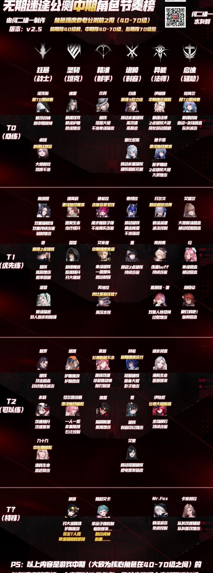大家好,我是何二维一。本文带来无期迷途中期角色节奏榜,聚焦40-70级阶段强度评估,结合专属烙印质变与实战表现,更新角色评级,并呼吁官方加强夏音!