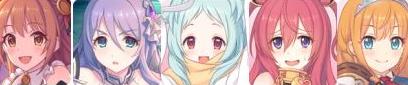从左到右依次是:望、静流、宫子、空花、佩可,各自有着偶像、姐姐、布丁、抖M和吃货的属性。