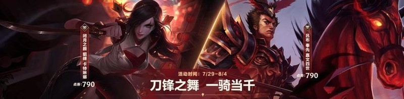 刀锋起舞,独战千军!即日起至8月4日,名将武圣系列皮肤宝箱限时热卖,超值开启。喜爱闭月之颜貂蝉、卡特琳娜(点击预览皮肤)以及吕布奉先、嘉文四世(点击预览皮肤)的玩家,不容错过,立即获取这两位骁勇战将,携手驰骋峡谷战场,尽享热血对决!