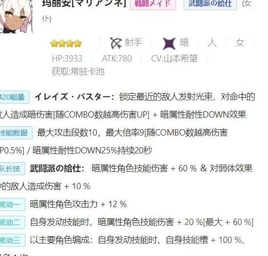 暗女仆具备全屏抗性削弱与独特双次攻击机制,技能伤害加成可观,实战中表现优异。