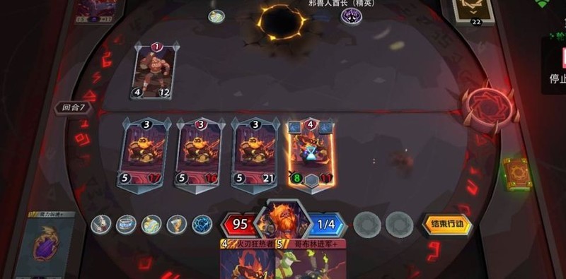 这套卡组的运作思路较为清晰。首回合应优先打出费用较低的装备牌,并适当减少手牌数量,确保能够顺利触发过牌效果。进入第二回合后,若已有提供回复,则可直接召唤,再通过恢复1点法力值,借此重新装备,再次激活狂热者技能实现回费循环,剩余2点费用可根据情况选择装配或。需特别注意避免主动使用抽牌手段,以免干扰指环的抽牌机制。第三回合起,若场上局势占优,即可召唤并为所有单位配齐装备,开启强力输出阶段;若形势吃紧需防守,则可施放,其召唤的哥布林自残机制不仅能触发英雄被动,还可联动投矛手造成直接伤害,与整体体系高度契合。面对常规对手时,此套打法可在低损情况下高效取胜。然而,该卡组存在一个致命克星——高轮回层数下的死亡恶魔,其机制对此阵容构成极大威胁,需格外警惕应对。