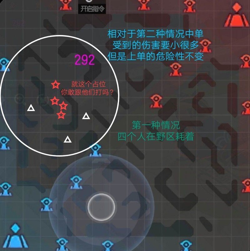 四人联手在野区消耗野怪血量,并将其引出对方视野范围。