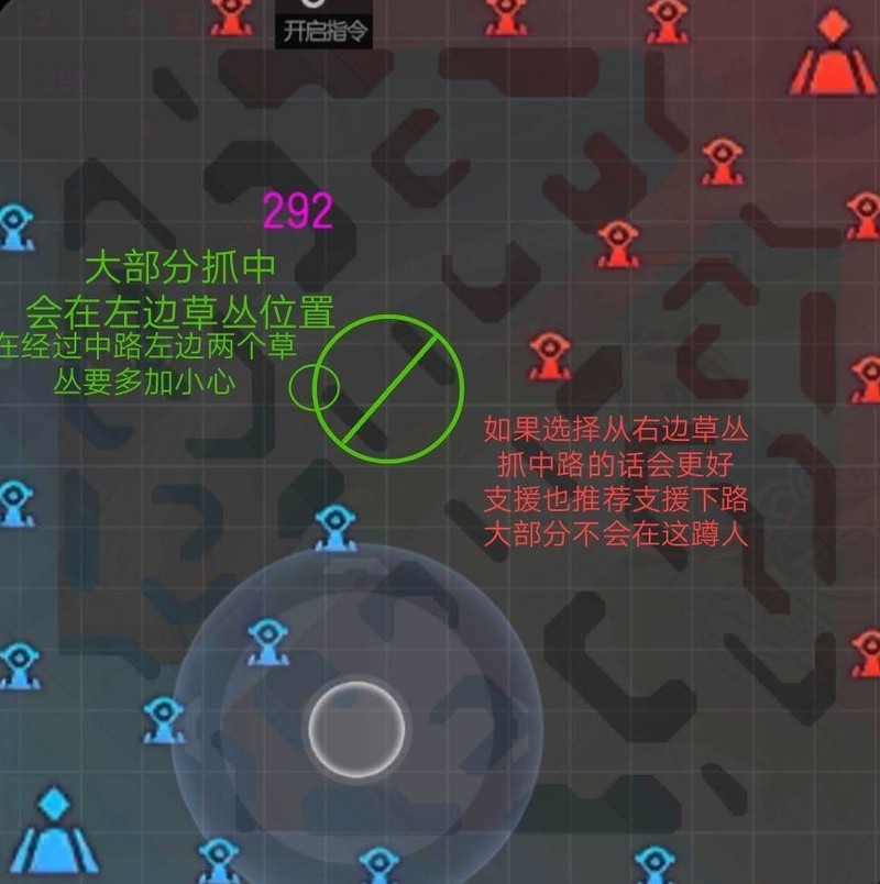 对方在中路蹲人时,通常会优先选择左侧草丛埋伏。