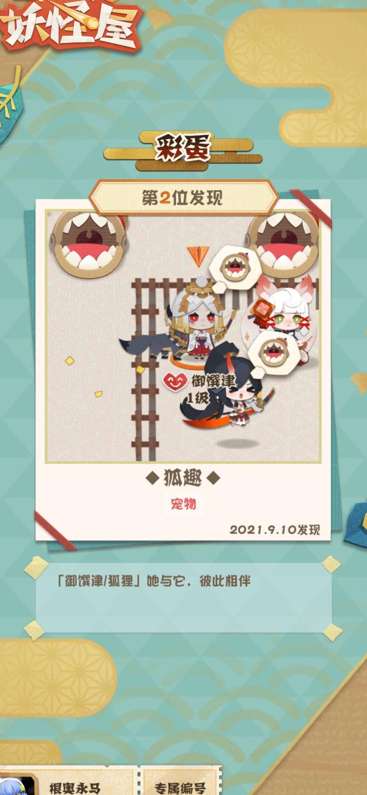 彩蛋一:当狐狸从远处跑来时,点击御馔津即可触发「狐趣」互动。