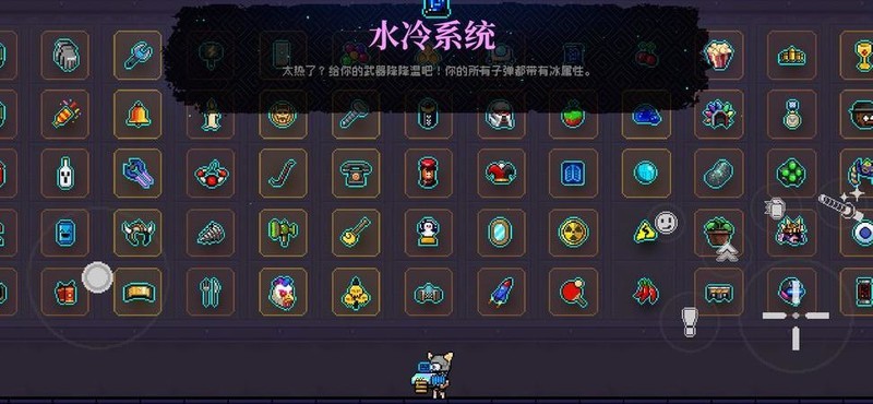 水冷系统与雪晶球均可附加冰属性效果。水冷系统能使所有子弹附带冰伤,效果稳定;雪晶球则有概率额外发射子弹,实用性较低。当敌人受到冰属性攻击时,会陷入寒冷状态,身体呈现淡蓝色。