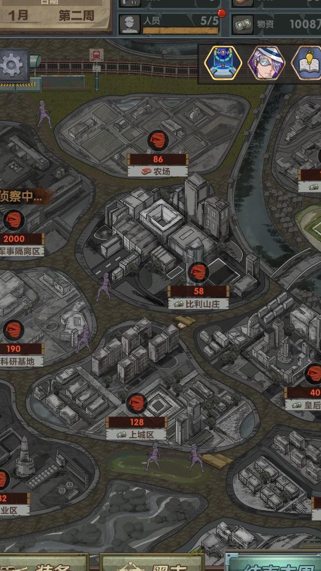 用爆米花快速赚取资源,兑换探员侦查军事隔离区两周,随后更换为强力角色,首推化工师。