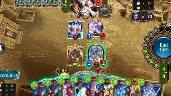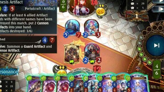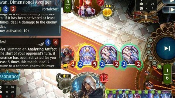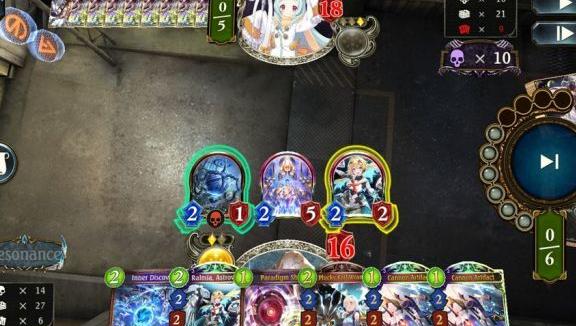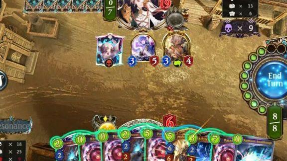 对方6费的亚必迭失去一个造物,导致我方典范仅减至2费。但这不影响计划,仍可激奏丝碧涅处理掉1费典范,再用0费典范回费,接着进化伊昂,实现强势返场并打脸,同时为下回合斩杀铺路。