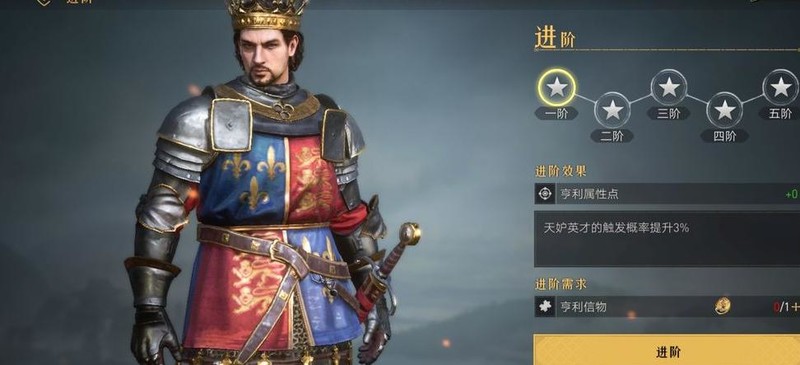 所示,获得英雄和技能信物后可进行进阶(即增加红星,俗称红),从而提升技能与英雄属性。