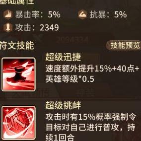 迅捷增强先手,挑衅附加控制,提升战斗主动权。