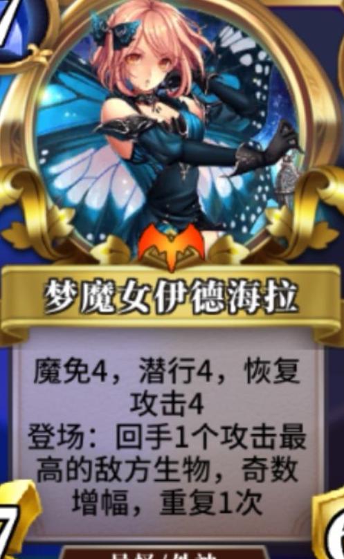 这张卡是奇数德体系的核心终端,其余卡牌大多围绕它构建。其强度堪称明显超模:7点攻击力与6点生命值的优质身材,附带珍贵的魔免4效果——能有效规避当前主流的4费法术解牌,如魔女梦魇等。同时具备潜行4、可治疗友方单位的能力,在奇数德卡组中使用时,还能将对手场上攻击力最高的两个随从回手,干扰力极强。连续打出此卡时,能快速清场并压制对手,往往在对方未及重组场面时便奠定胜势,实战表现极为强势。