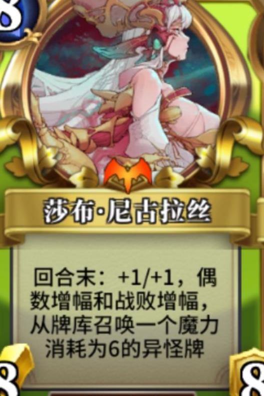 这是偶数奈体系的关键思路之一。该卡组主要有两种制胜方式:其一是通过千层递进快速召唤阿撒托斯并触发其苏醒效果取胜,虽然实际对局中对手通常具备应对手段,但若起手顺畅,往往在6至8费就能将其顺利登场;其二是借助莎布·尼古拉丝进行强力铺场,通过其特效拉出古老者、不敬者阿布霍斯或其他六费异怪,形成场面压制。一旦完成铺场,后续回合几乎可实现自动化输出,节奏流畅且压迫力极强。