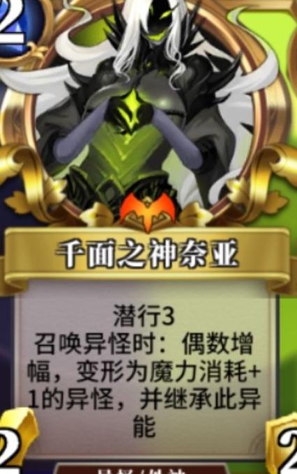 千面之神奈亚是偶数奈卡组中的核心组件之一,其独特机制在于每次召唤异怪时都会变形为费用增加一点的异怪。需要特别注意的是,变形意味着她并非生成新随从,而是自身形态改变。这一过程有两个关键特性:首先,变形后的异怪是从全游戏中对应费用的所有异怪中随机选取,完全不受玩家牌库影响;其次,变形产生的随从不会触发任何入场效果。此外,若对手在1号位置使用梦魇将你场上的奈亚返回手牌,而你1号位恰好有异怪存在,奈亚会先完成变形,导致梦魇目标失效。由于当前环境中各类干扰法术泛滥,奈亚的成长过程常受阻碍,但通常只要成功进化至7费,至少已回本,理想情况下可达8费甚至更高。理论上,当其达到10费时,应可变为两个10费异怪之一——犹格·索托斯或阿撒托斯。然而目前实际机制中,奈亚仅能变形成犹格·索托斯,无法出现阿撒托斯。该问题已被注意到,未来可能会进行调整,至于具体如何修正,尚待官方进一步说明。