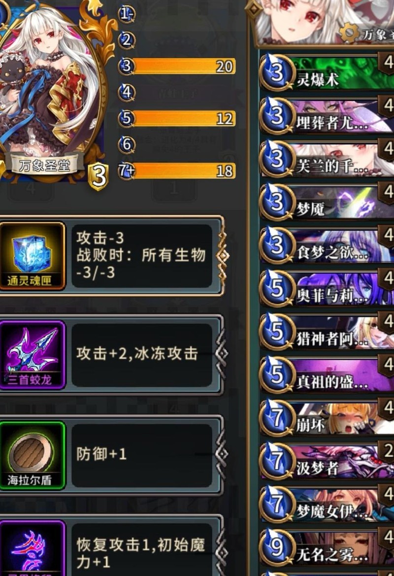 这套奇数思路较为直接,核心在于通过灵能爆裂、梦魇以及各类控场手段逐步瓦解对手场面,待时机成熟后拍下魔女完成清场并奠定胜局,理想情况是在十费前连续打出关键卡牌形成压制。虽然卡组中低费解牌看似繁多,如灵能爆裂和食梦等,初看略显杂乱,但这些牌不仅可用于处理对方随从,也能巧妙作用于己方单位。特别要注意的是无名之雾,其高潜行属性本质上是一种减益效果。举例来说,若场上存在一个继承了千层套路的五费异种怪,或站场的无名之雾,而对手拥有两个强力随从时,可主动使用灵能爆裂击杀自己的怪,从而触发变身,转化为7/7/6的梦魔女,并将对手两个生物返回手牌。正因如此,我在七费异种随从中仅携带两张汲梦者。当然,是否携带汲梦者取决于个人理解,也可选择不带,毕竟存在一定风险。我加入它的主要考虑是防止梦魔女过早上手,导致七费异种数量不足,无法顺利与无名之雾形成联动。