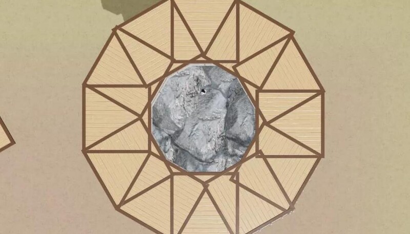 建造第二层观景台时,因面积需求更大,每块地板只需比前一块多旋转三次即可完成铺设。